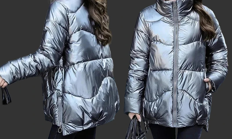 Błyszcząca Wodoodporna Parka zimowa Damska