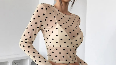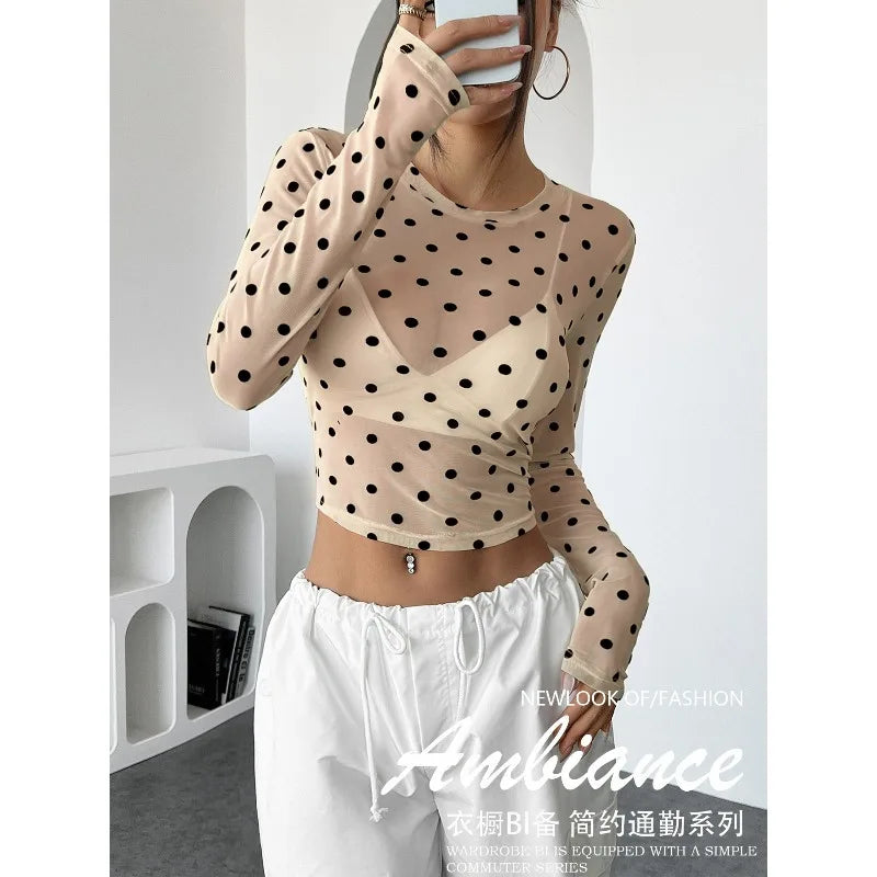 Prześwitująca Bluzka 'Hot Girl' w Kropki — Mesh Elegancja i Efekt Slim Fit!