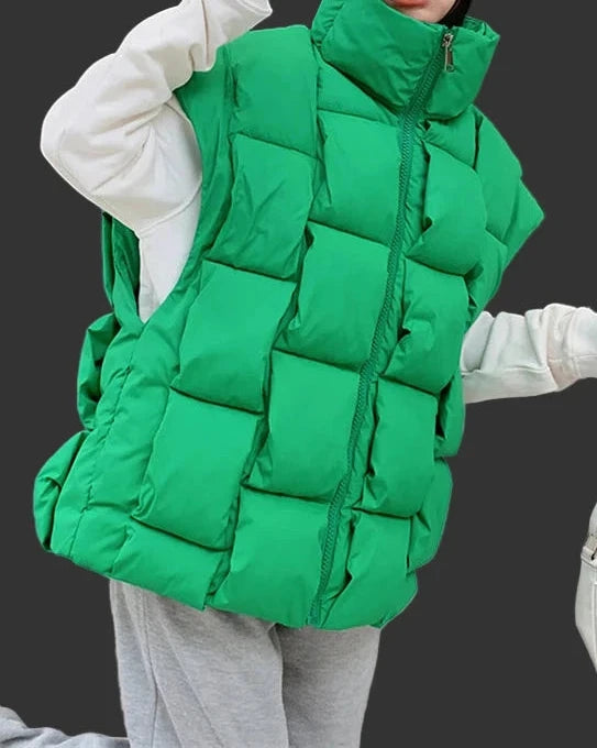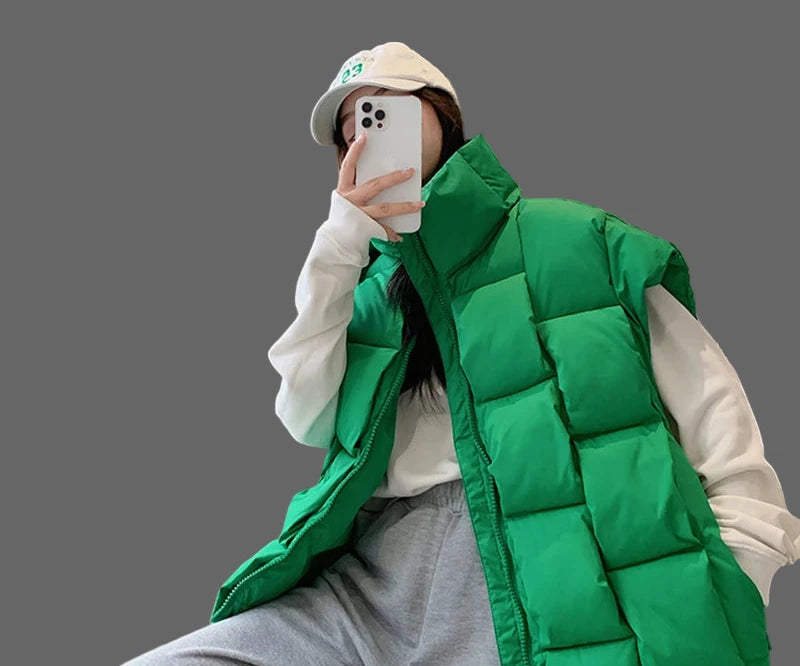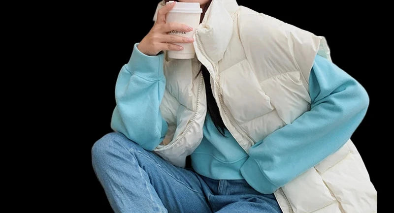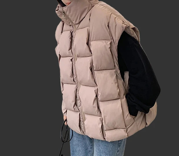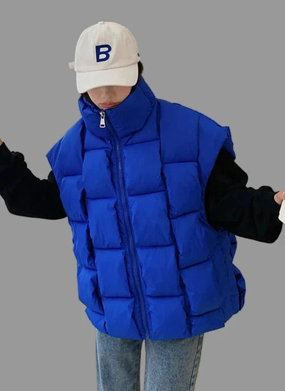 Kurtka Puffer Bezrękawnik Ciepły Luźny Modny