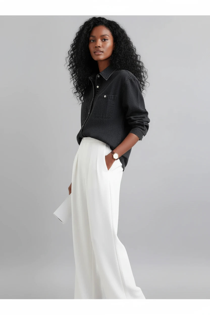 Ta koszula denimowa to idealne połączenie luźnego stylu i miejskiej nonszalancji, stworzona z myślą o modnych stylizacjach.
