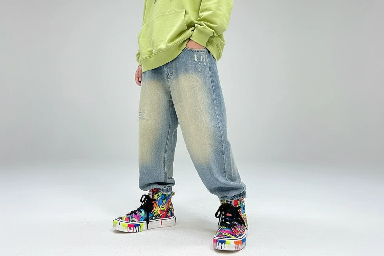 Chłopięce spodnie jeansowe w stylu streetwear