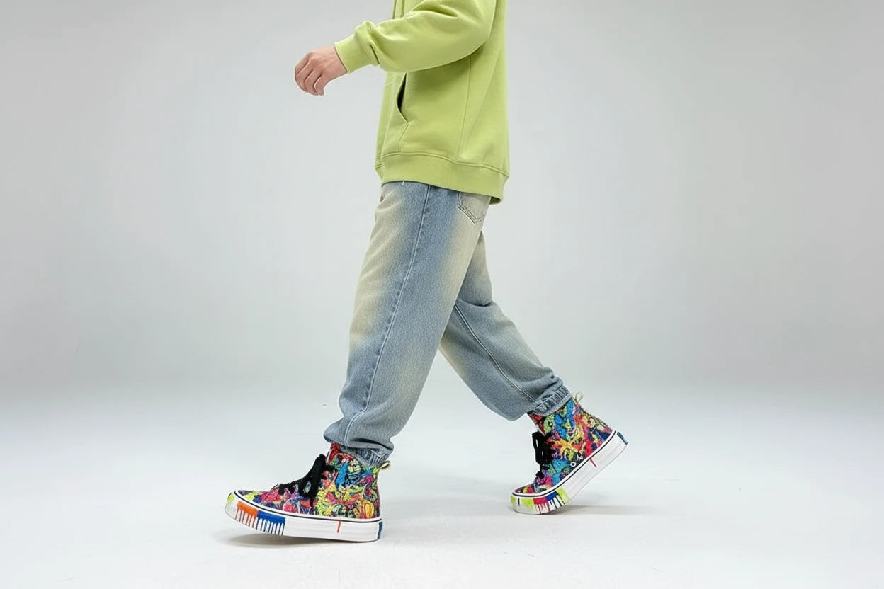 Elastyczny pas zapewnia wygodne dopasowanie do sylwetki dziecka i swobodę ruchów podczas zabawy, spacerów czy aktywności na świeżym powietrzu. Regularny krój gwarantuje komfort noszenia przez cały dzień, a kolorowe nadruki z motywem cartoon nadają spodniom nowoczesny, dziecięcy charakter, który świetnie wpisuje się w aktualne trendy streetwearowe.