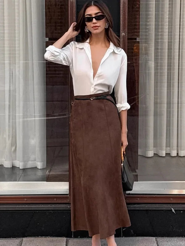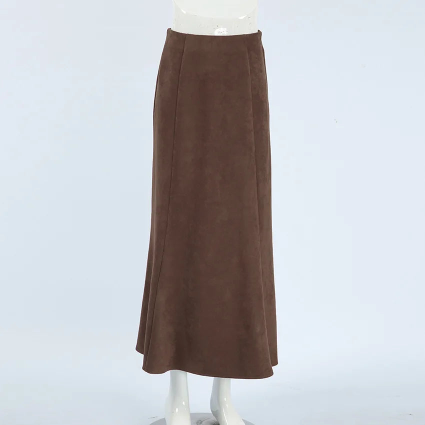 Elegancka Spódnica Maxi 'Fishtail Flare' z Miękkiego Zamszu