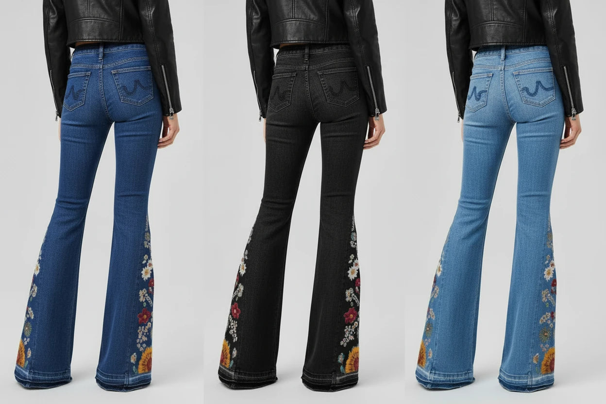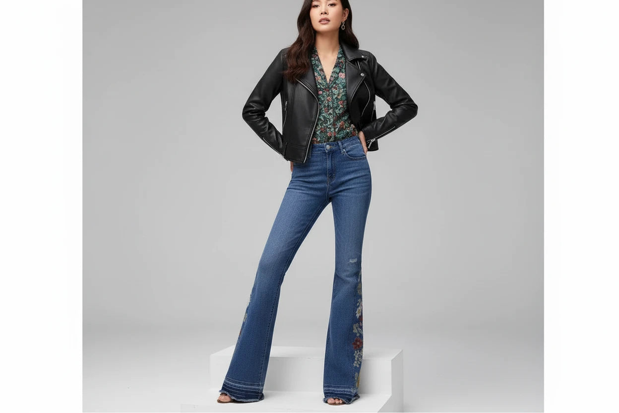 ✔ Fason dzwonów (Flared Jeans) – wydłuża nogi i równoważy proporcje