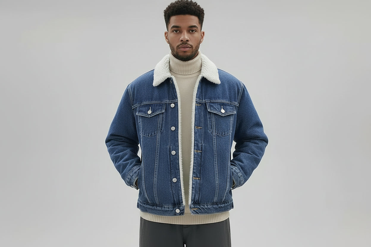 Urban Denim Jacket dla mężczyzn – dopasowana kurtka jeansowa z ociepleniem wełnianym