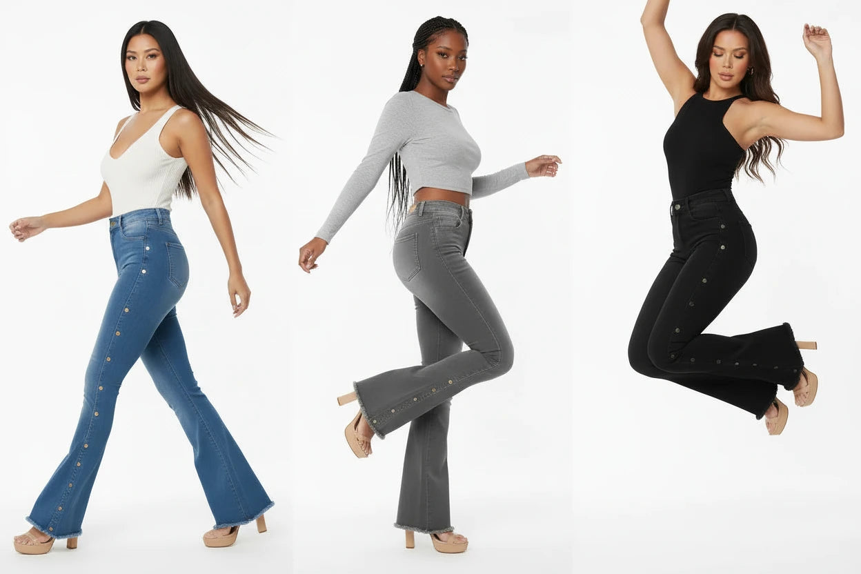 ✔ Fason dzwonów (Flare Pants) – optycznie wydłuża nogi