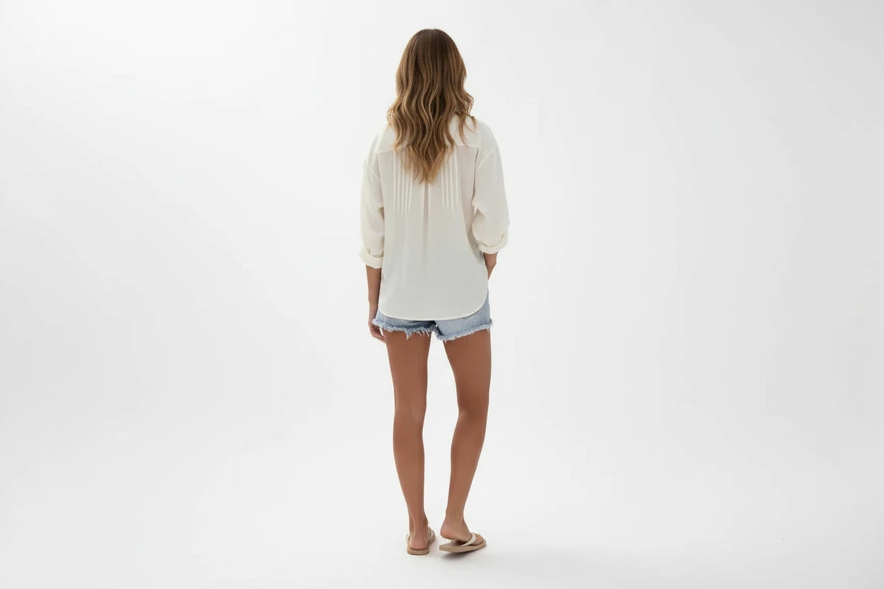 Średni stan oraz regularne dopasowanie subtelnie podkreślają talię i kształty, nie krępując ruchów. To doskonały wybór na ciepłe dni — na spacer, wakacyjny wyjazd czy codzienne stylizacje miejskie.