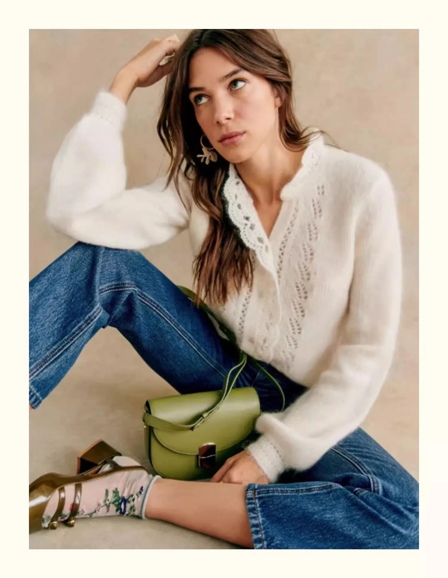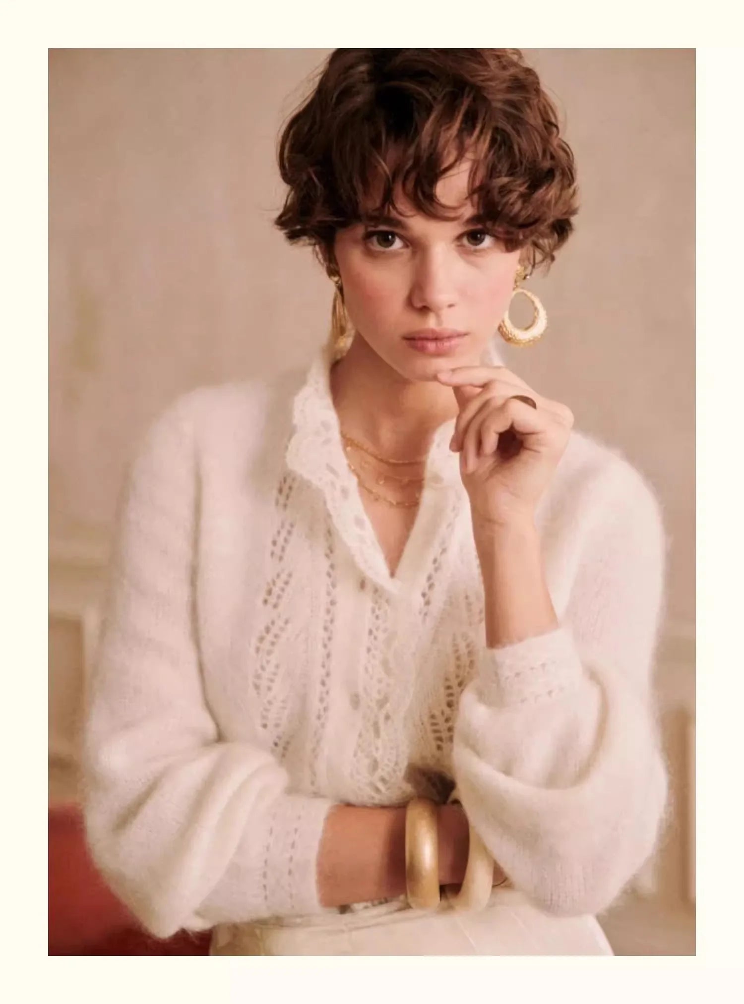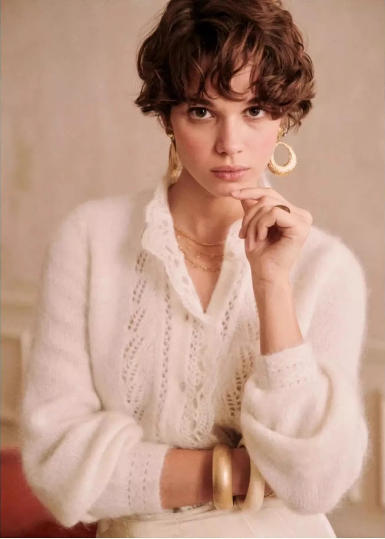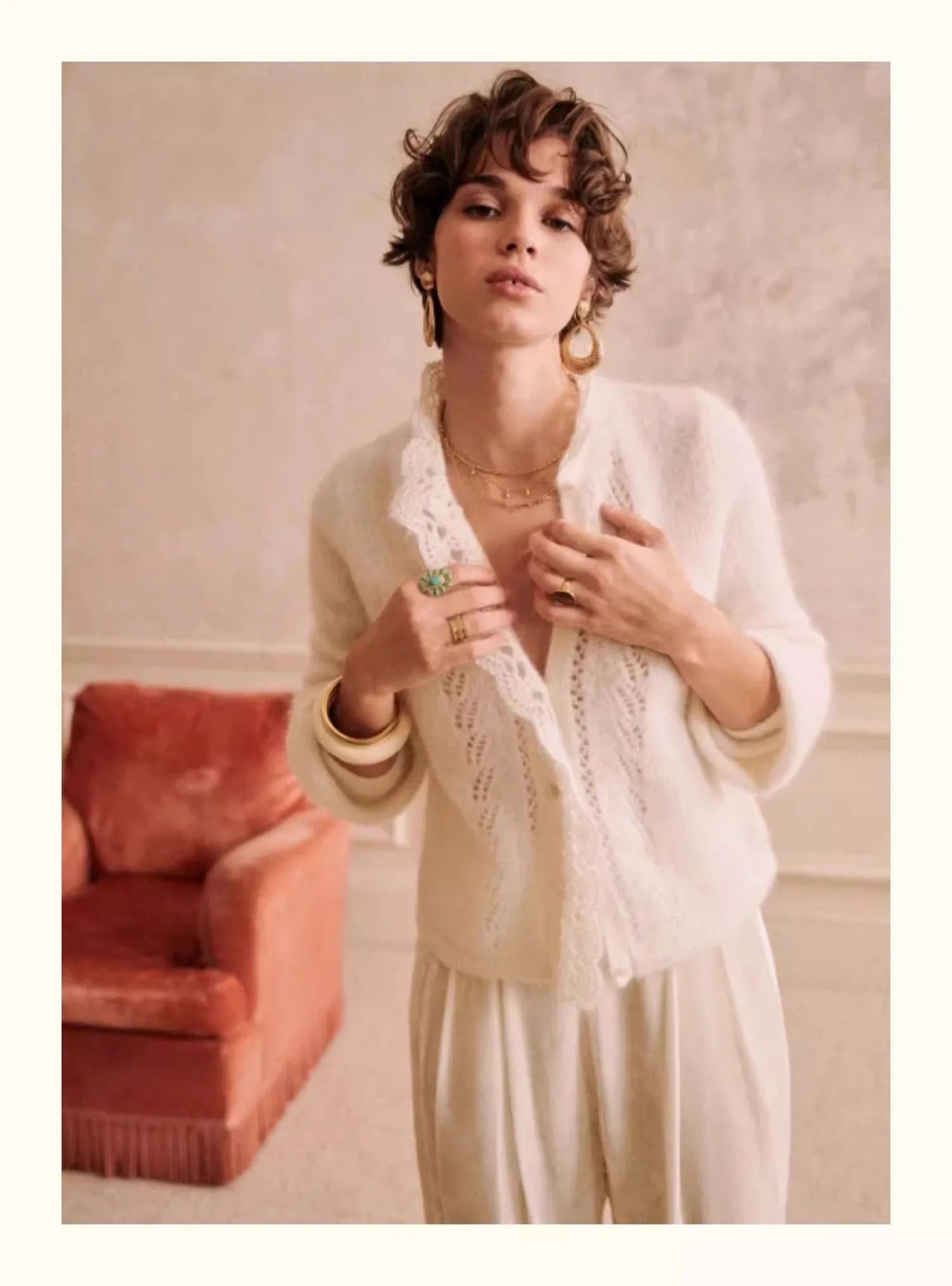Jest to stylowy, dzianinowy kardigan dla kobiet w retro i eleganckim francuskim stylu. miękki i "kleisty"