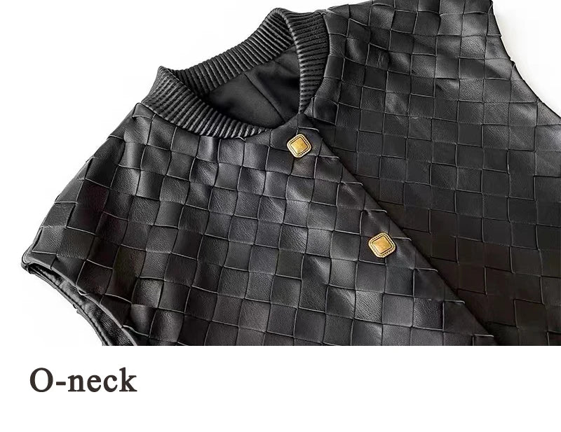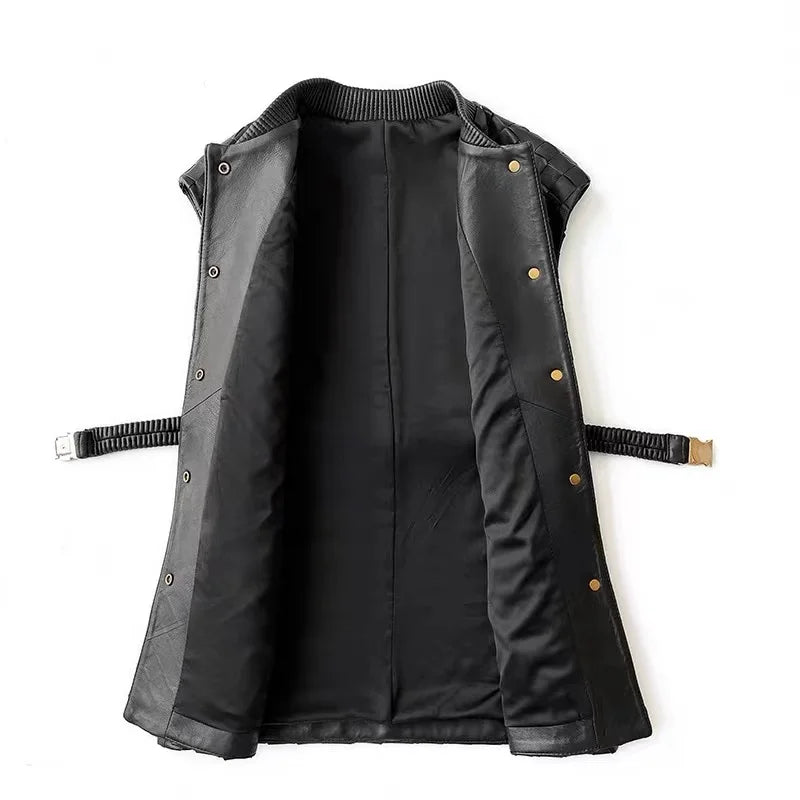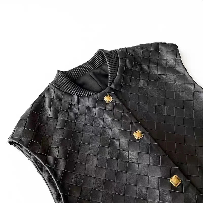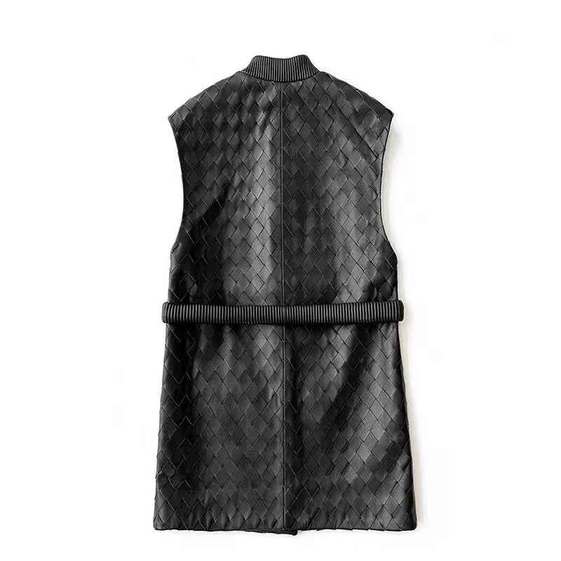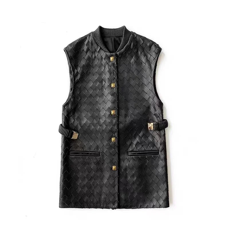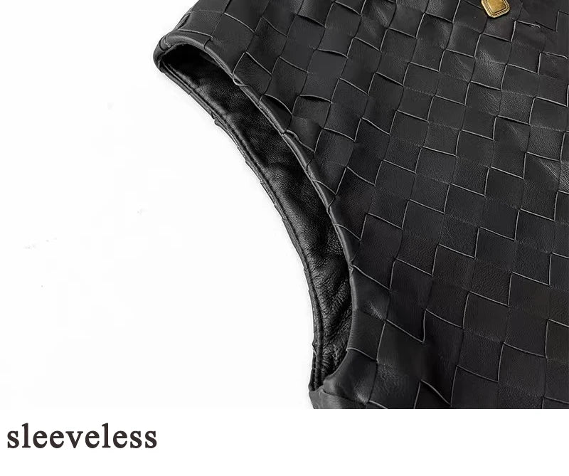 Ręcznie Dziana Skórzana Kamizelka Damska Skóra owcza