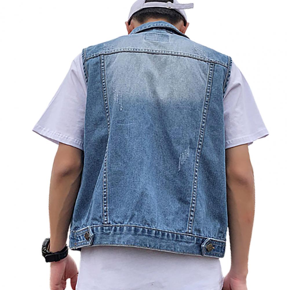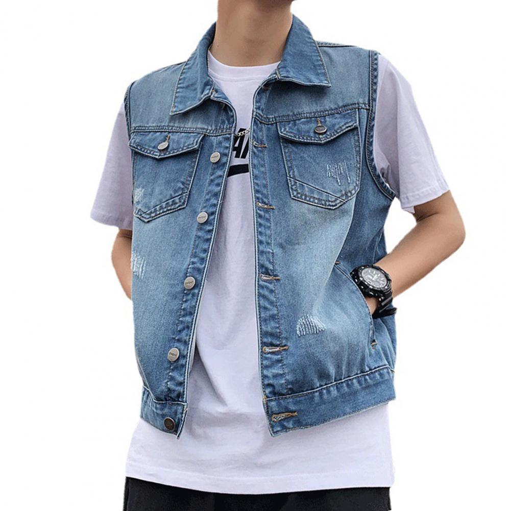 Męska Jeansowa Kamizelka Ripped Hole - Bezrękawnik Casual Thin Wide-Waisted