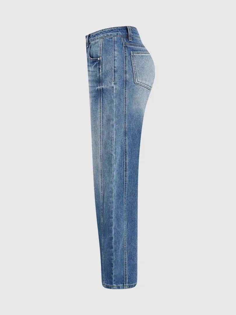 Modne Jeansy Damskie z Wysokim Stanem i Szerokimi Nogawkami