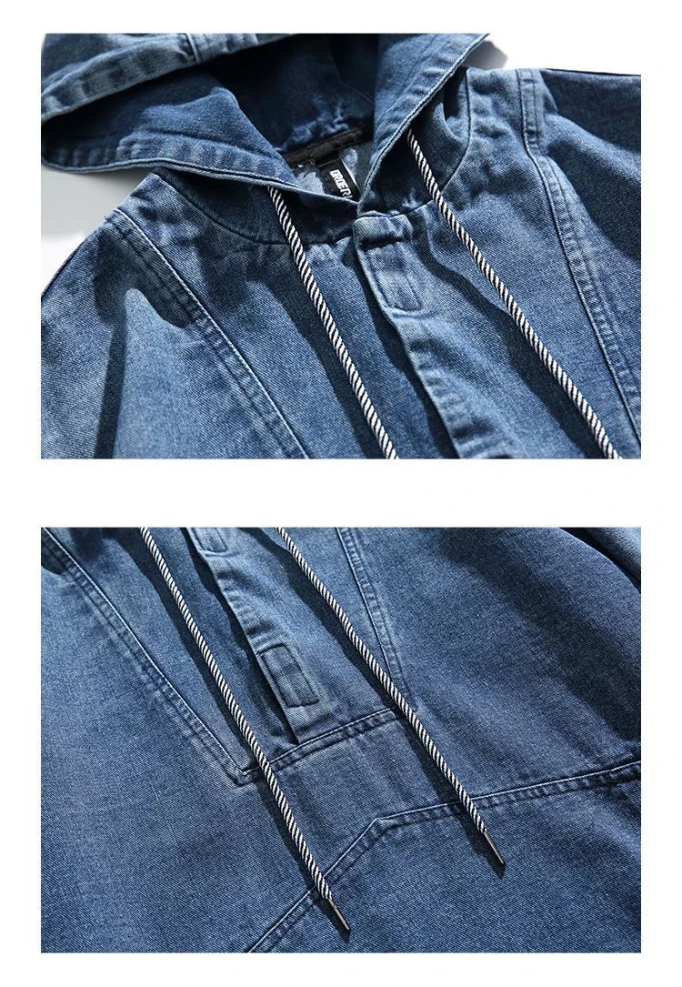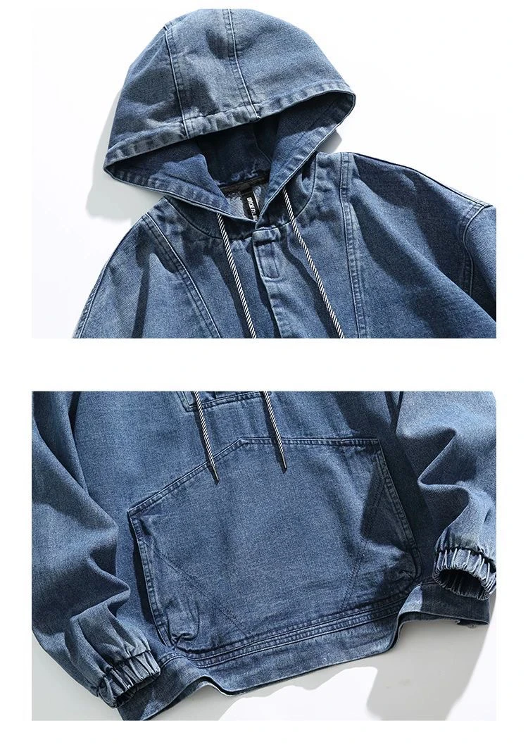 Męska bluza z kapturem Denim łączy casualowy komfort z retro charakterem, tworząc stylowy element garderoby idealny na wiosnę i jesień. Model wykonany z wysokiej jakości mieszanki bawełny i poliestru zapewnia wygodę, trwałość oraz odpowiednią oddychalność w codziennym użytkowaniu. Klasyczny krój, pełne rękawy i regulowany kaptur podkreślają wszechstronność bluzy, a splicing denimowy nadaje jej unikalnego, amerykańskiego stylu vintage.