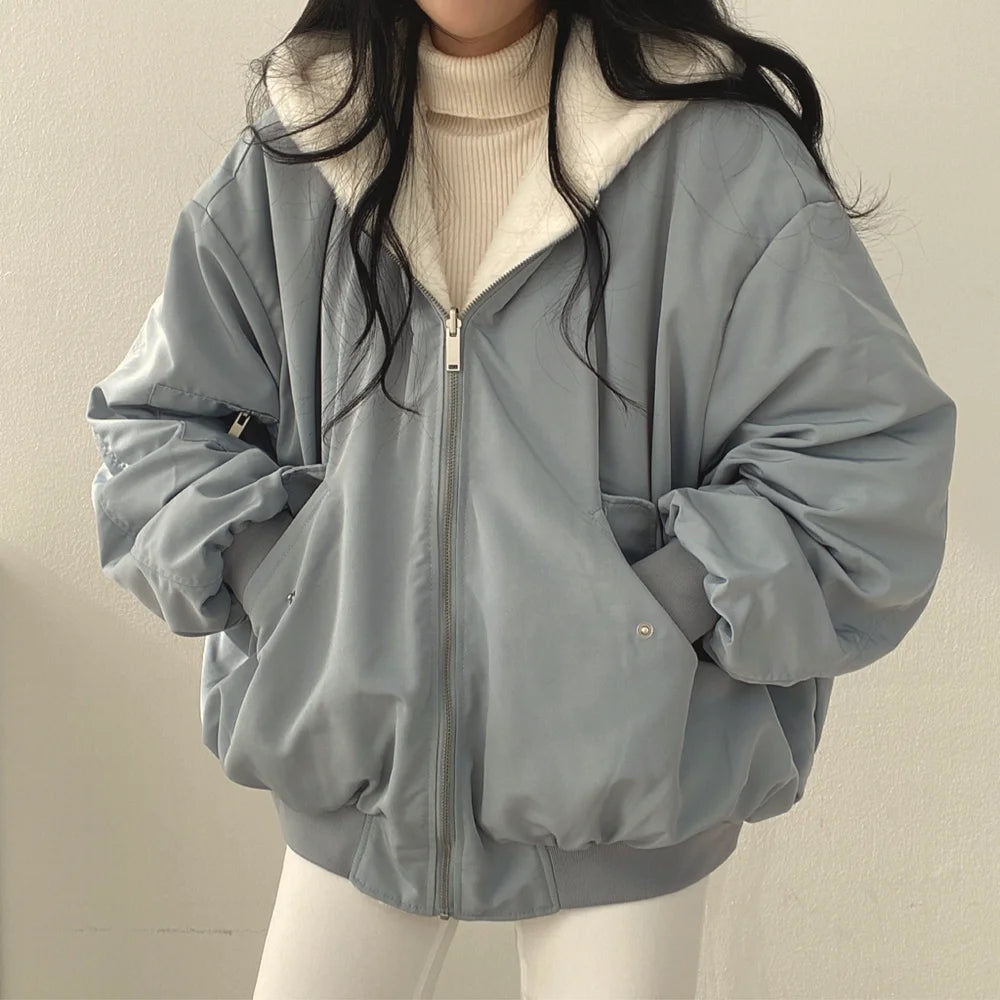 Oversize'owa Dwustronna Kurtka Zimowa Z Kapturem
