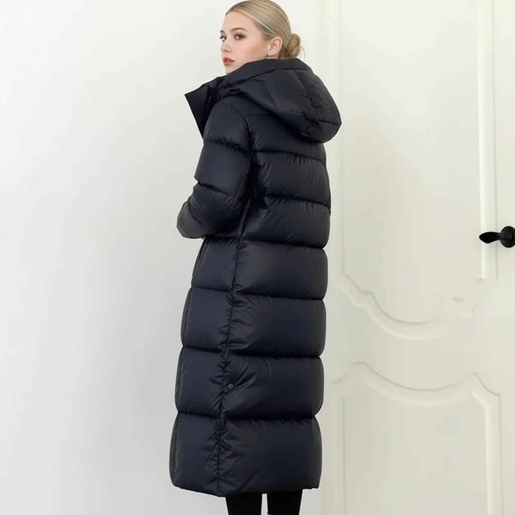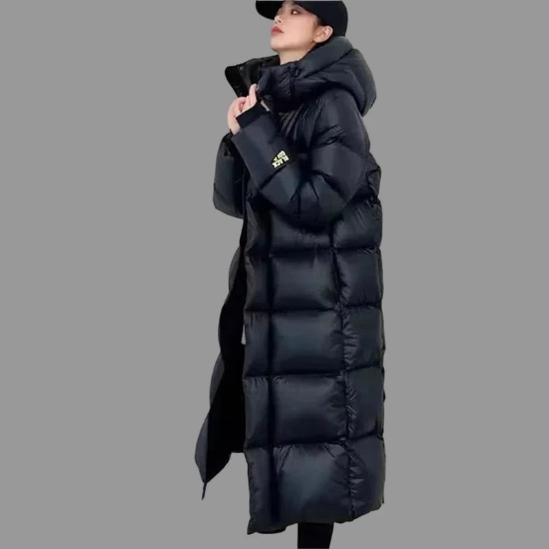 Zimowa Długa Kurtka Damska Puchowa czarna