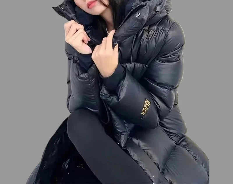 Zaprojektowana w koreańskim stylu, sięga za kolano, zapewniając maksymalne ciepło i komfort.