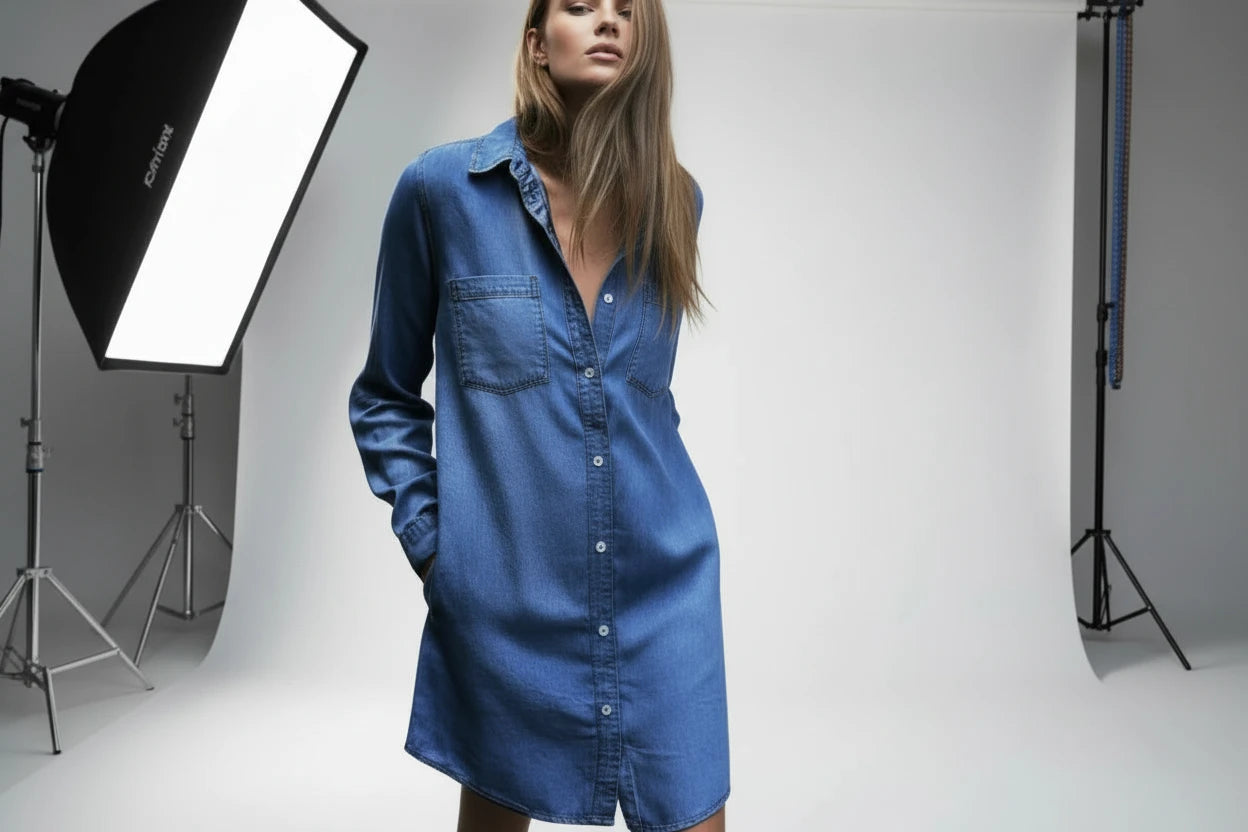 Całoroczna Wszechstronność: Chociaż idealna na lato, długie rękawy i denim pozwalają na noszenie jej również w chłodniejsze dni.