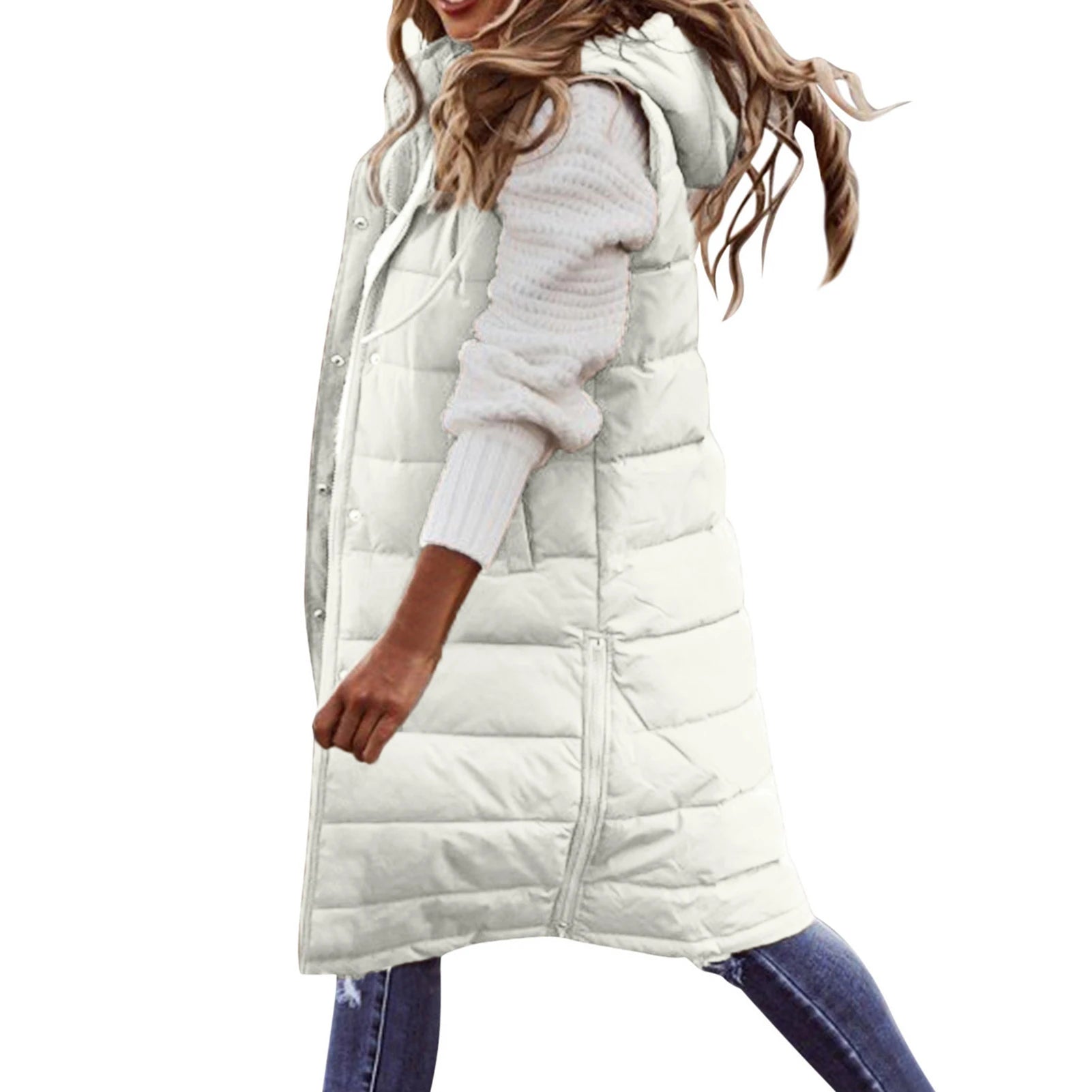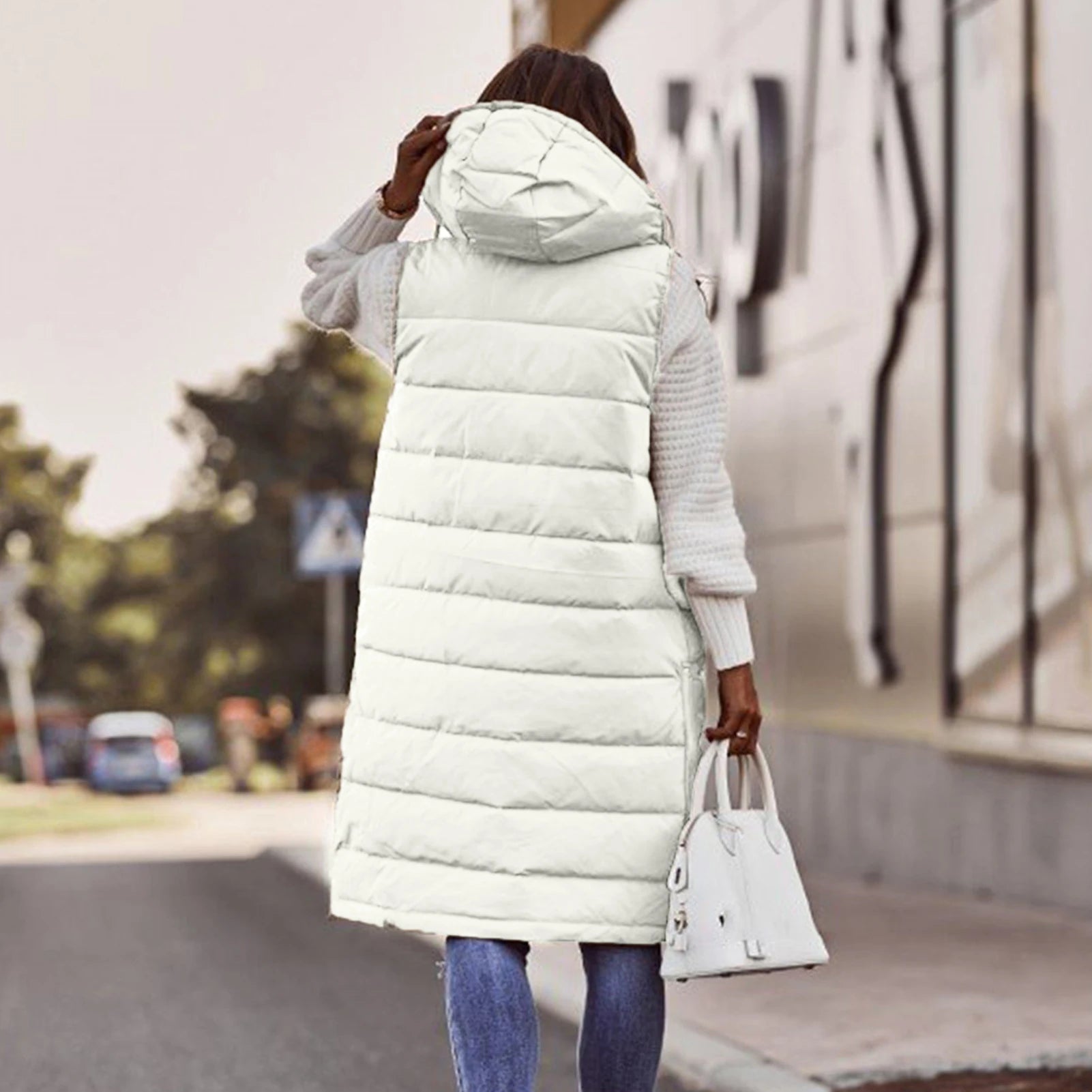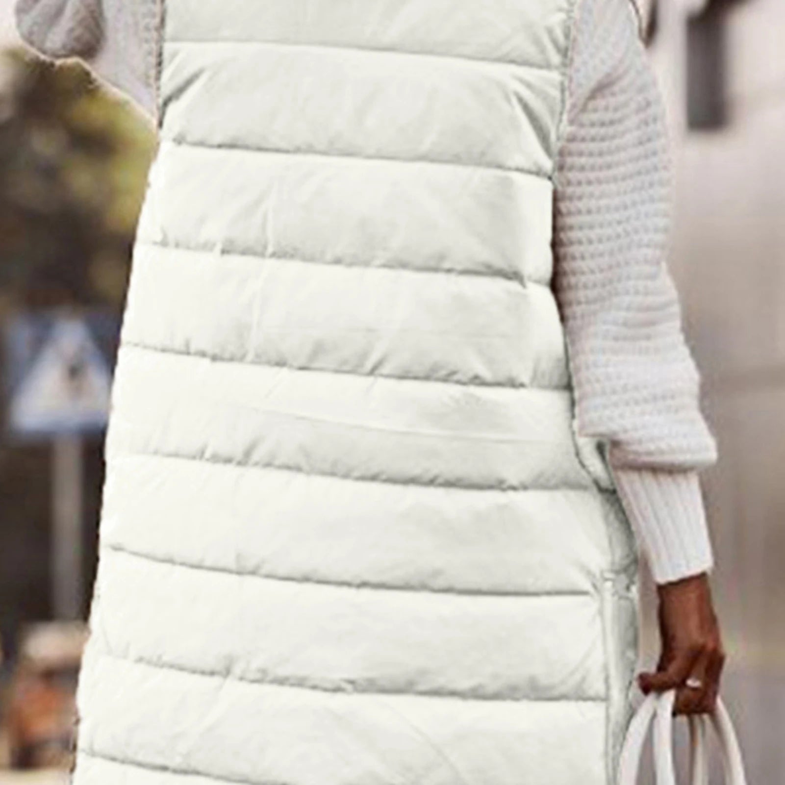 Długi Pikowany Bezrękawnik Damski z Kapturem
